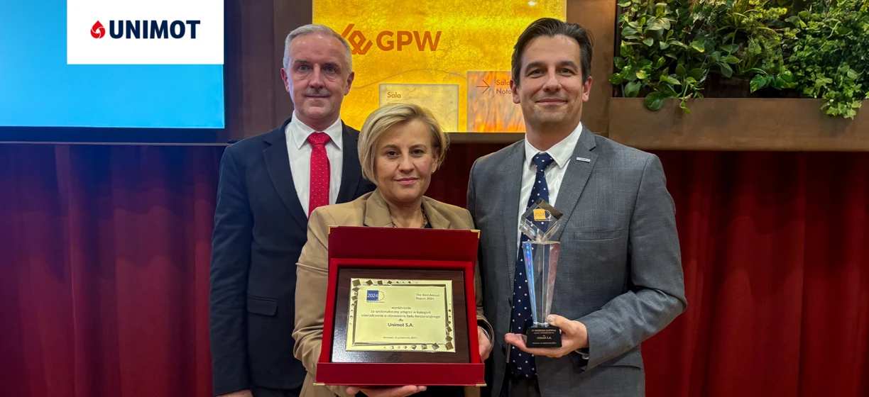 To dla nas ogromne wyróżnienie i potwierdzenie najwyższej jakości naszej sprawozdawczości. Transparentność, rzetelność oraz kompleksowe podejście do prezentowania wyników i  działań to aspekty, na które od lat kładziemy szczególny nacisk. Nagroda ma szczególne znaczenie również dlatego, że w roku, w którym zaczęły nas obowiązywać standardy ESRS, przygotowaliśmy raport zgodny z tymi wymogami, a obszar zrównoważonego rozwoju włączyliśmy do skonsolidowanego sprawozdania – mówi Michał Hojowski, wiceprezes zarządu ds. transformacji energetycznej w Unimot S.A.